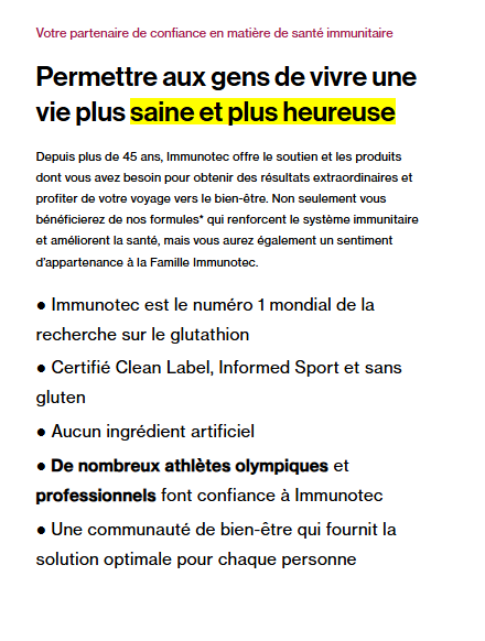 Seit mehr als 45 Jahren entwickelt und liefert Immunotec die Produkte, die du brauchst, um außergewöhnliche Ergebnisse zu erzielen und mehr Wohlbefinden zu genießen. Profitiere von den Vorteilen unserer Wirkstoffformeln, die zur Stärkung des Immunsystems und zur Verbesserung deiner Gesundheit beitragen*